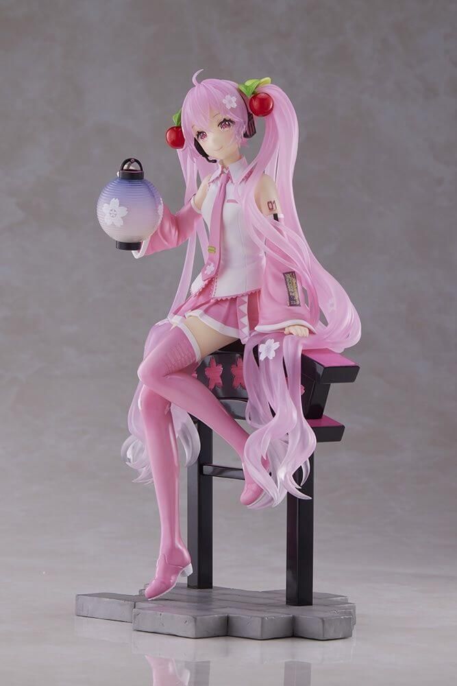 Light up your figure collection with this Artist Masterpiece + Sakura Miku Lantern Ver. by Taito! This figure features Miku sitting on a sakura themed gate; her slightly translucent hair perfectly accentuates the glow provided by her lantern, which is battery operated and lights up!