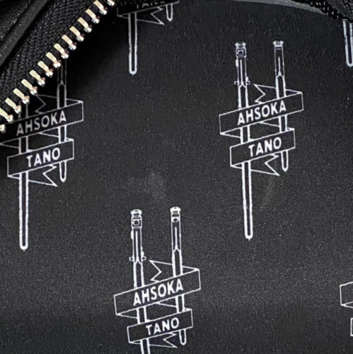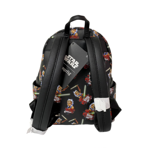 Loungefly Star Wars Ahsoka Tano Clone Wars Tattoo Allover Print Mini Backpack! Perfect Pattern Placement and the colors are so vibrant. Double Loungefly logo stamped zipper top opening, top carry loop, front zipper pocket, silver-tone hardware, padded & adjustable straps, 2 side slip pockets, Loungefly X Star Wars enamel brand plate, contrasting interior lining with zipper pocket!