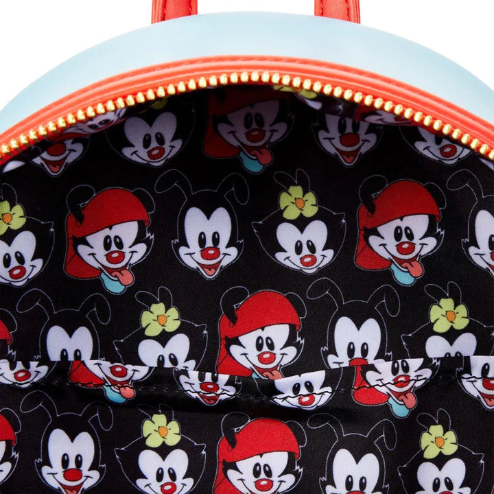 The Loungefly Animaniacs WB Tower Mini Backpack creates nostalgia as you see the three siblings, Yakko, Wakko, and Dot pop out of the Warner Brothers water tower! Featuring applique and printed details on a faux leather base, it also comes with a metal zipper charm!