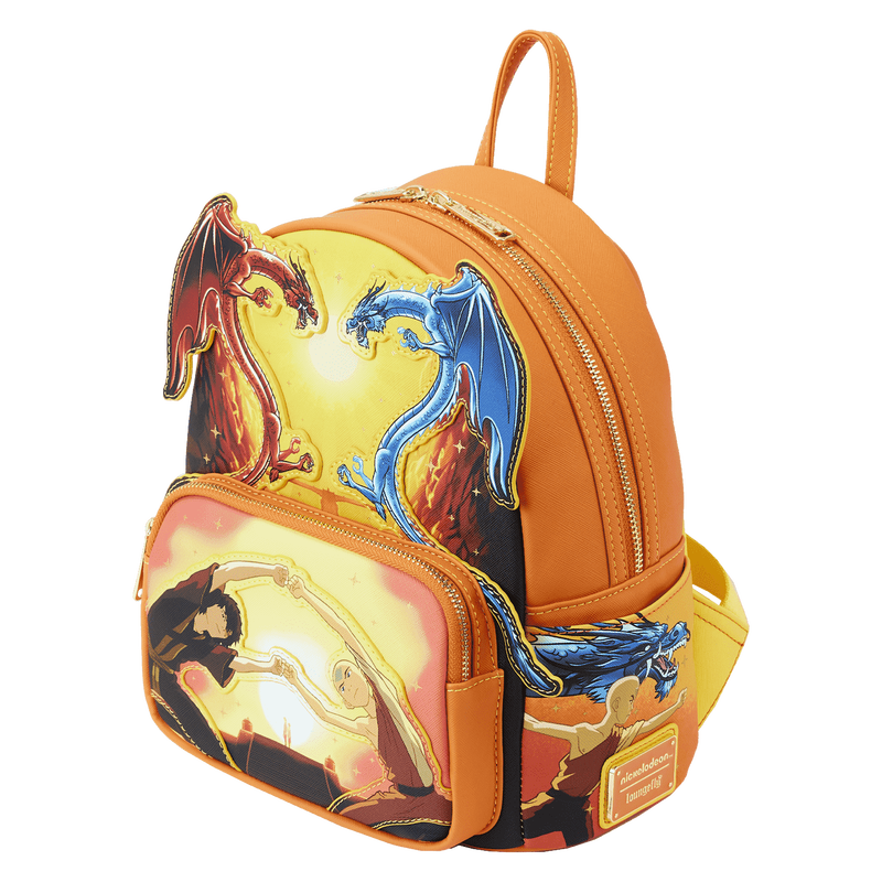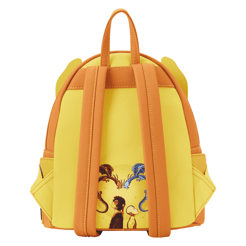 Ready to face the Masters? Put your firebending skills to the test with the Loungefly Avatar: The Last Airbender Fire Dance Mini Backpack. On the front zipper pocket, Zuko and Aang join together in the Dancing Dragon form. Up above, red and blue dragons wait to deliver judgment as gold foil stars appear around them. Aang and Zuko mimic the dragons’ movements on the bag’s side pockets, and the Masters gift their knowledge on the back. This mini backpack is sure to bring balance to any outfit and is perfect for those looking to learn the ancient ways of firebending.