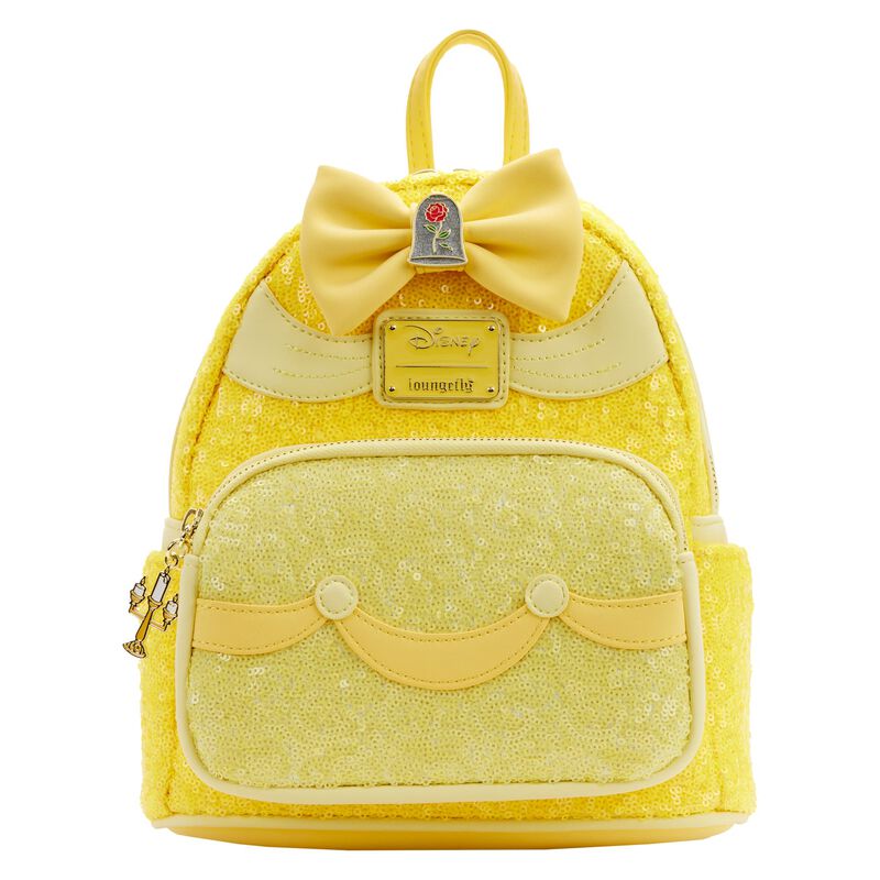 An enchanting journey awaits you with this Loungefly Disney Beauty and the Beast Belle Sequin Mini Backpack! Elegant details in sequins of gold bring Belle’s signature ballgown-look to life on this backpack. A 3D bow holds the Enchanted Rose in the middle, symbolizing the promise of a curse that can be broken, if beauty is found on the inside. Lumiere, on the front zipped pocket, offers illuminating service as an enamel zipper charm. On the back, you’ll find the words “Enchanting Beauty” in graceful lettering. It’s the perfect accessory for the ultimate Disney occasion—or for turning everyday outings into magical adventures. Act fast to collect this exclusive accessory; supplies are limited.