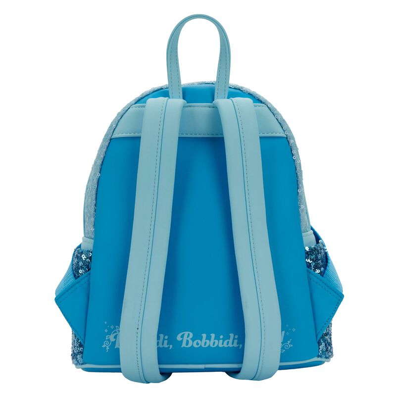 Magical and fun-filled outings are all wrapped up with a bow when you carry along this Disney Cinderella Sequin Mini Backpack. The Fairy Godmother has waved her wand to make this powder blue backpack shimmer and sparkle. On the front, a 3-D metallic bow glitters against an array of sequins. On the back, the words “Bippidy, Bobbidi, Boo!” magically appear. This backpack complements any Disney outfit and is perfect for fans wishing to keep their favorite animated moments close.