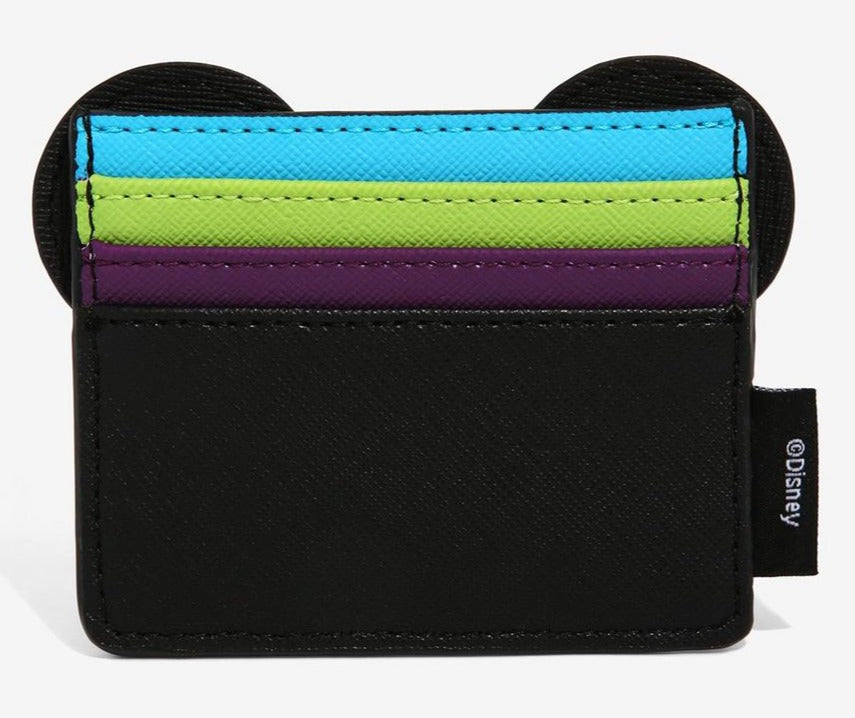 Minnie Mouse trades her signature bow for an electrifying new look! You'll feel like the star of the show with this faux leather cardholder from Loungefly, featuring snazzy purple, blue, pink, and silver sequins. Purple polka-dot lining completes this ear-resistible accessory.