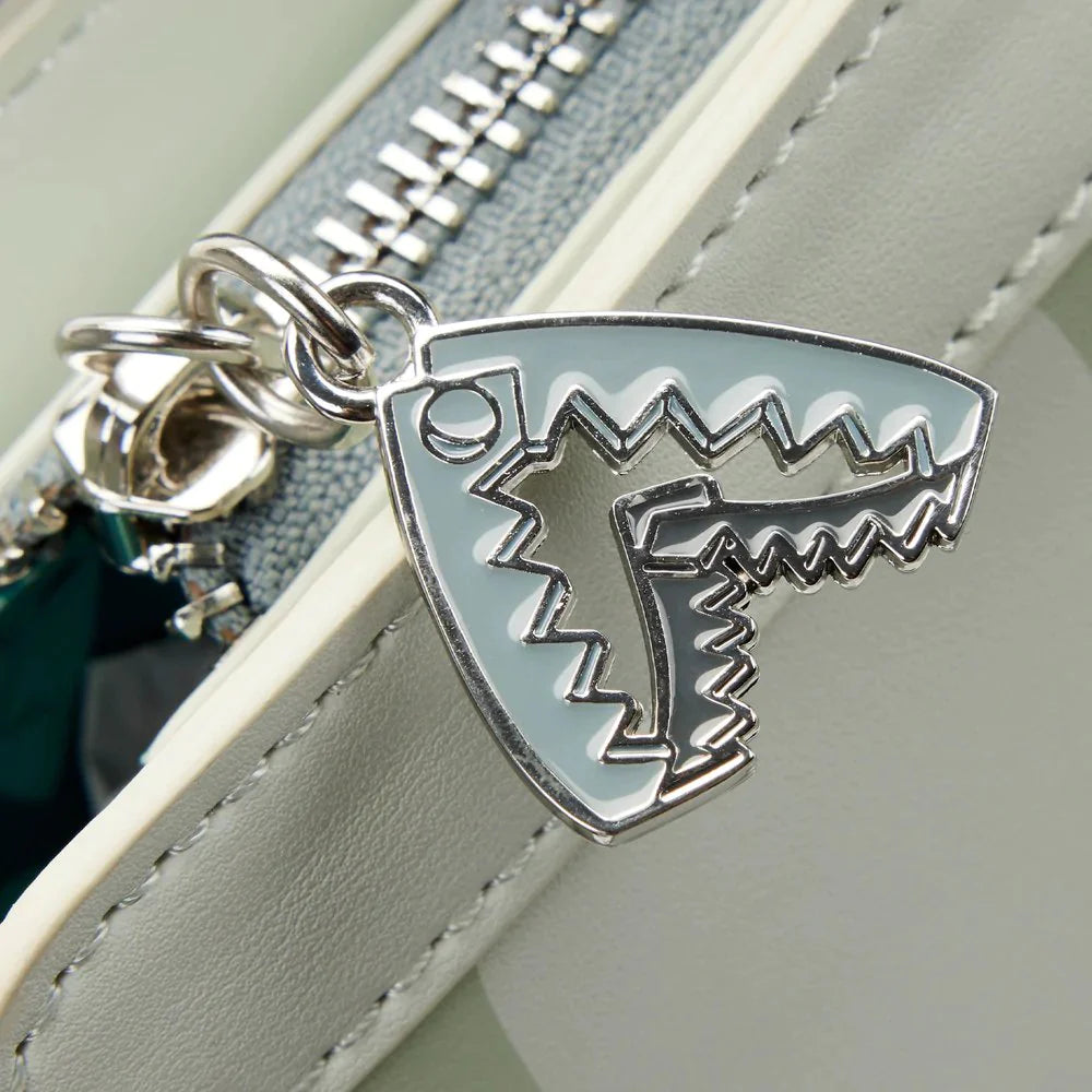 Join Oogie Boogie's little henchmen and fulfill their sinister plan to kidnap the Sandy Claws! The Loungefly Disney Nightmare Before Christmas Triple Pocket Lock Shock Barrel Bath Tub Crossbody features the three mischievous trick or treaters in their favorite transportation vehicle - a bath tub! The legs of the tub are moveable, and the characters move up and down! This bag features applique, printed and glow in the dark details.