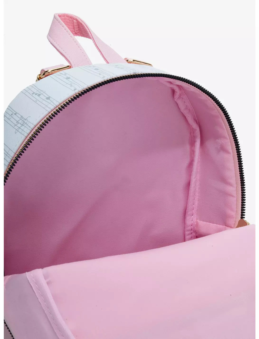 Practice your scales and arpeggios with the ever fabulous, Marie! This The Aristocats mini backpack features Marie sitting with sheet music printed in the background and flowers on the side.