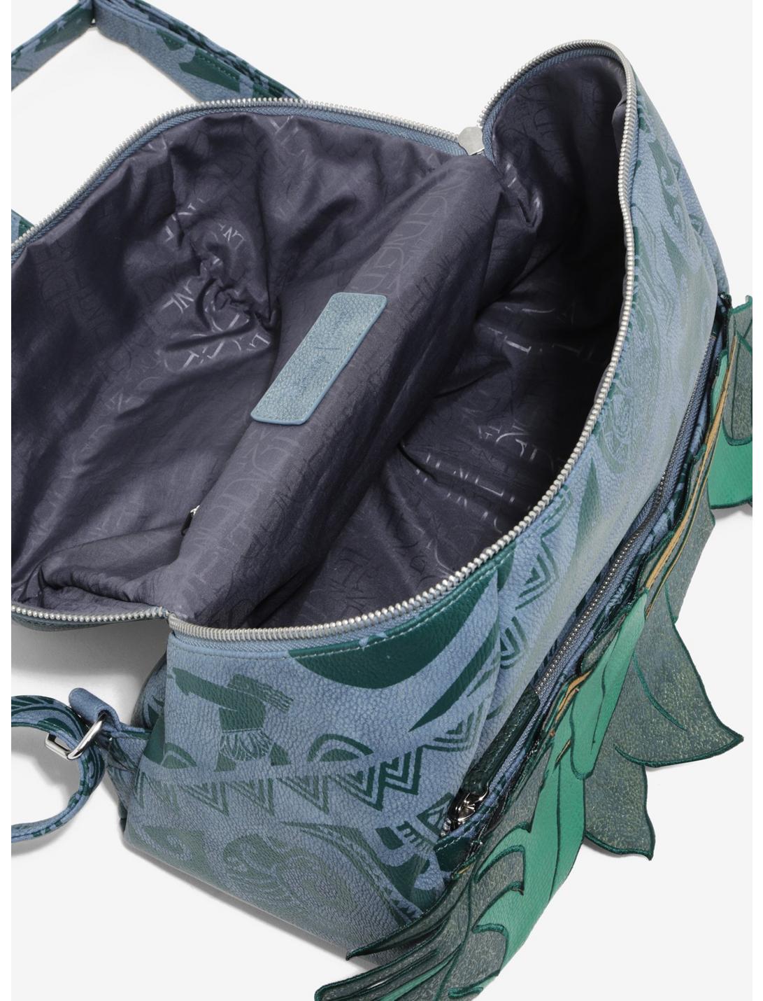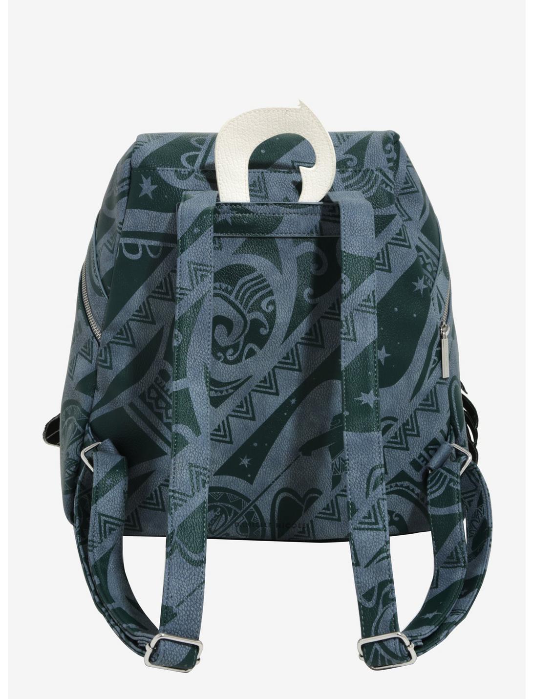 Maui says you're welcome for this backpack! This gorgeous and detailed faux-leather backpack features a design based on the demi-god that features ocean waves and leaves. The top handle is his powerful hook. Two zippered pockets, internal pockets, adjustable straps.