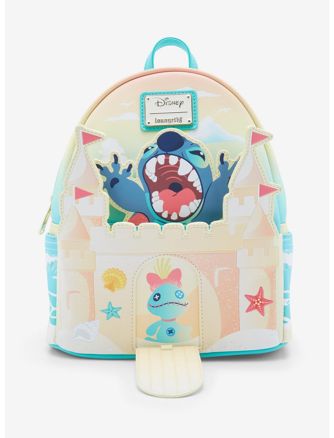 Join your favorite Disney alien for a day at the beach with this Lilo & Stitch-inspired mini backpack! Featuring an applique of a sandcastle on the front pocket, with debossed details and an opening drawbridge, the front of this bag also includes a moveable applique of Stitch. With side pockets, a front pocket, adjustable straps, and a back portrait of Stitch on the beach, this backpack is perfect for adding some tropical style to your look.