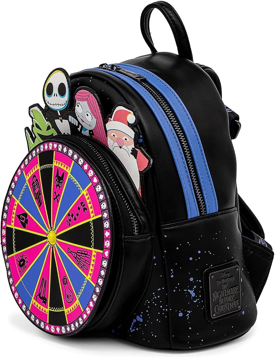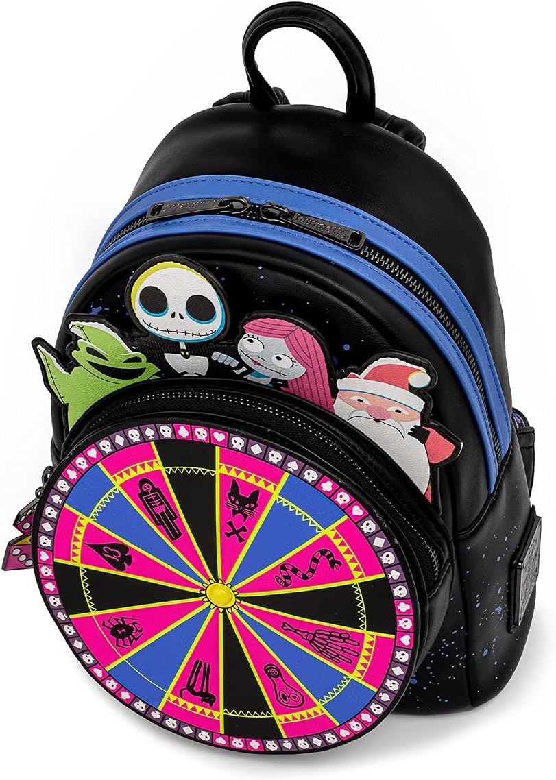 He’s the shadow on the moon at night, filling your dreams to the brim with fright! This officially licensed backpack is inspired by the iconic Oogie Boogie sequence in Nightmare Before Christmas. Roll the dice with the dice enamel zipper charm. The fluorescent print glows under blacklight. The lining inside is filled with creepy crawlies – just like Oogie Boogie himself!