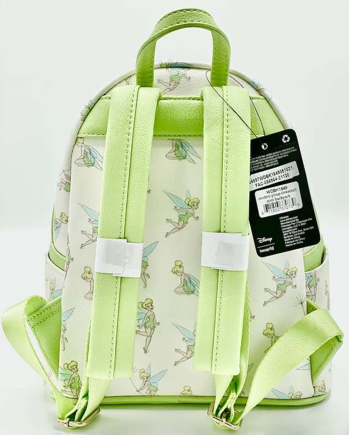 Pack your Neverland essentials as you head towards the second star to the right and straight on 'til morning with this Loungefly Tinkerbell Mini Backpack! Created as an exclusive to Modern Pinup in the USA and firstly featuring a white background with beautiful bright green trims, this charming bag showcases an all over print (AOP) of everyone's favorite fairy. As well as the stunning character artwork, the piece is finally complete with adjustable and padded shoulder straps, classic double zip fastenings and the signature enamel logo.