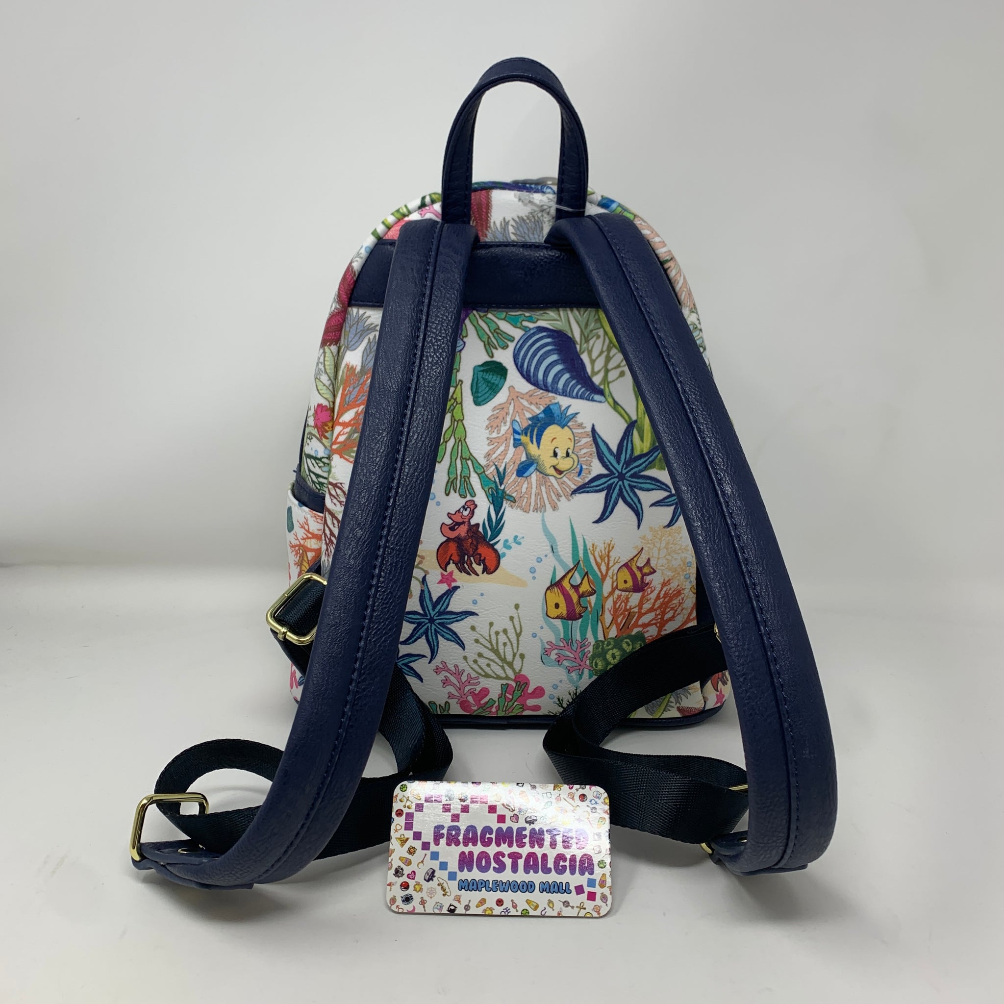 We've all had those days when life on land just isn't cutting it - and this backpack is just for those days! This white mini backpack from Disney's The Little Mermaid and Loungefly features an allover print inspired by the sea! You shouldn't run out of pockets with the main zipper compartment, small zipper closure pocket and two side water bottle pockets. Adjustable back straps.