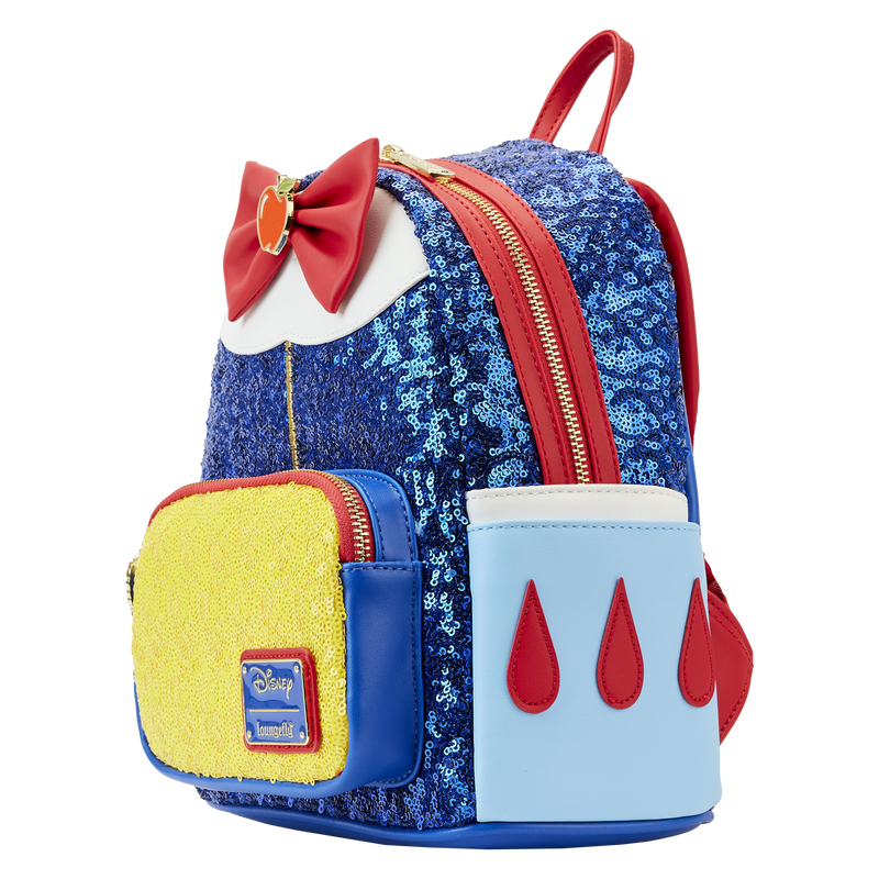 Mirror, mirror, on the wall… which is the fairest mini backpack and wallet set of them all? The Exclusive Loungefly Snow White Sequin Series Mini Backpack and wallet set takes the form of Disney’s first animated princess. Covered in dazzling sequins that shine, this design reflects the details of Snow White’s dress.