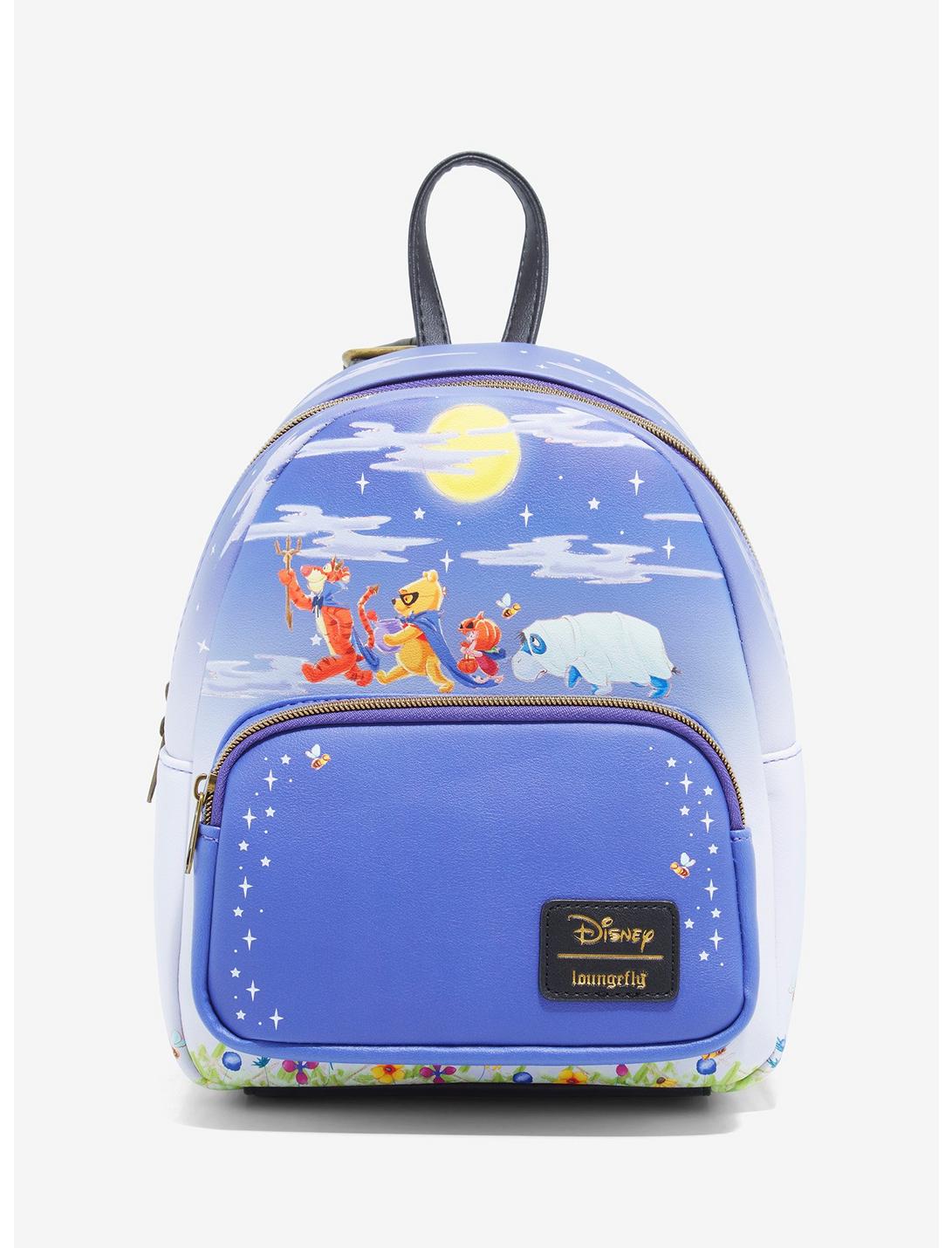 Seriously, can it get any cuter than this?! Pooh and his best friends from Winnie the Pooh are out looking for candy and hunny in their Halloween best. Stuff your essentials in this mini backpack and join in on the fun! Featuring the four costumed pals on the front under an ombré sky and full moon. Adjustable straps, front zipper pocket, interior drop pocket and antique brass tone hardware.