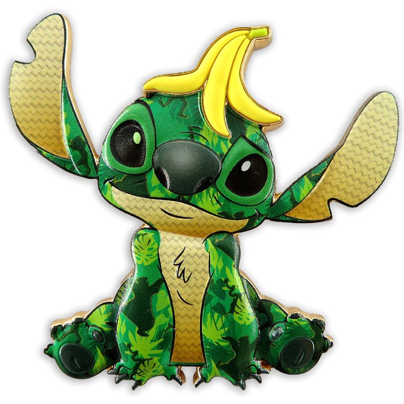 Inspired by the original Lilo & Stitch film trailers from 2002 featuring Stitch crashing classic Disney film scenes, this monthly, limited release series of collectible pins puts a new spin on the adored extraterrestrial. Each release honors a different, beloved Disney film. This month's entry, inspired by The Jungle Book lets Stitch savor the bare necessities of life.