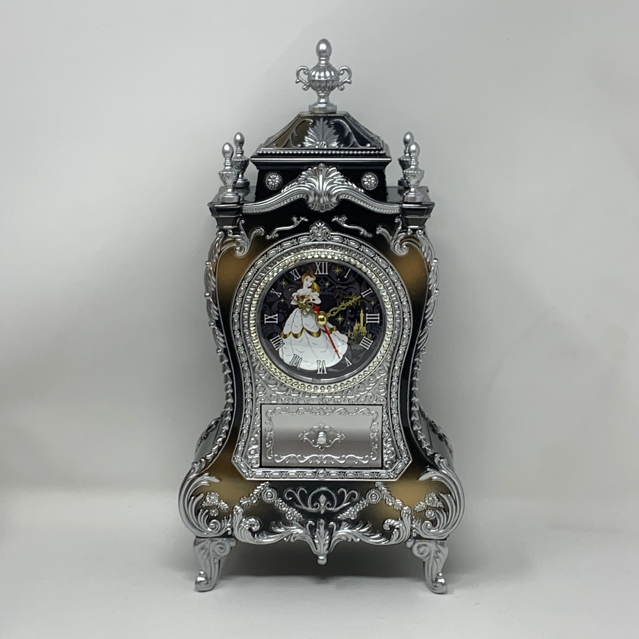 This beautiful and elegantly embossed table clock depicts Belle standing in her iconic ball gown amongst the roman numerals on the face of the clock.
