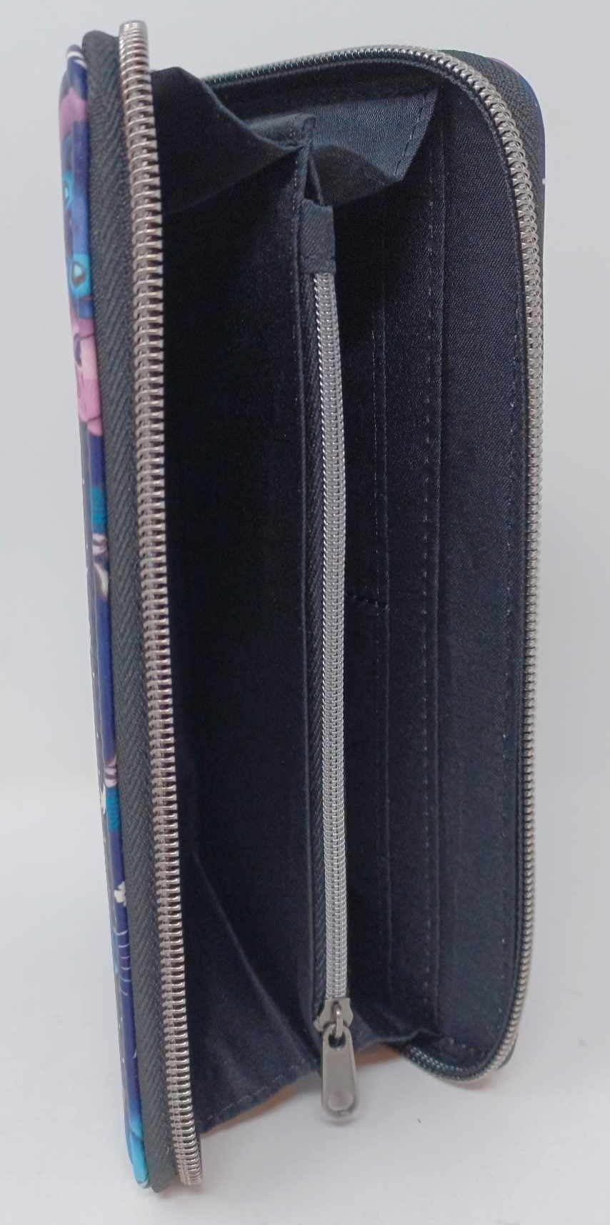 You'll always be reminded of your favorite Disney movie when you add this adorable Angel and Stitch wallet to your collection. This stylish wallet features an outside zipper and an all over print of the ultimate alien power couple Stitch and Angel. This wallet utilizes several interior card slots, and a central zipper pouch for coins or other small items.