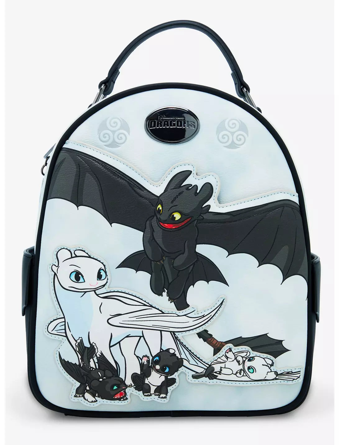 Once there were dragons, and now they're back! Inspired by How to Train Your Dragon, this mini backpack features appliques of Toothless, Light Fury, and their adorable kids! Lifelike cloud fabric is brought to life by embossed details—and don't miss the metal zipper charms, one designed like Toothless and one like Light Fury.