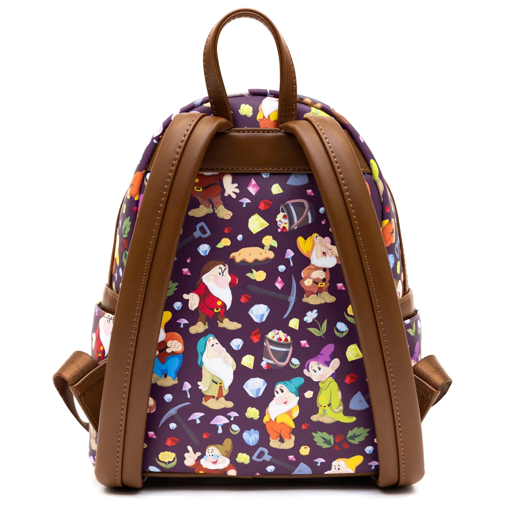 You're going to love this Snow White and the Seven Dwarfs Mini Backpack. Backpack features include sturdy antique bronze toned metal hardware, adjustable straps, side pockets, and is made of vegan leather (polyurethane).