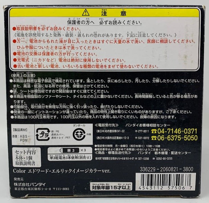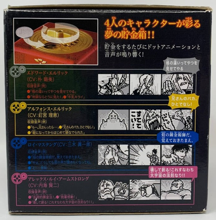 Edward's Coin Bank is colored red to match his cloak and a little LCD screen on the front displays little spot animations that feature the brothers Elric in short gimmicky sequences that are accompanied by sound whenever a JPY100 coin is inserted.