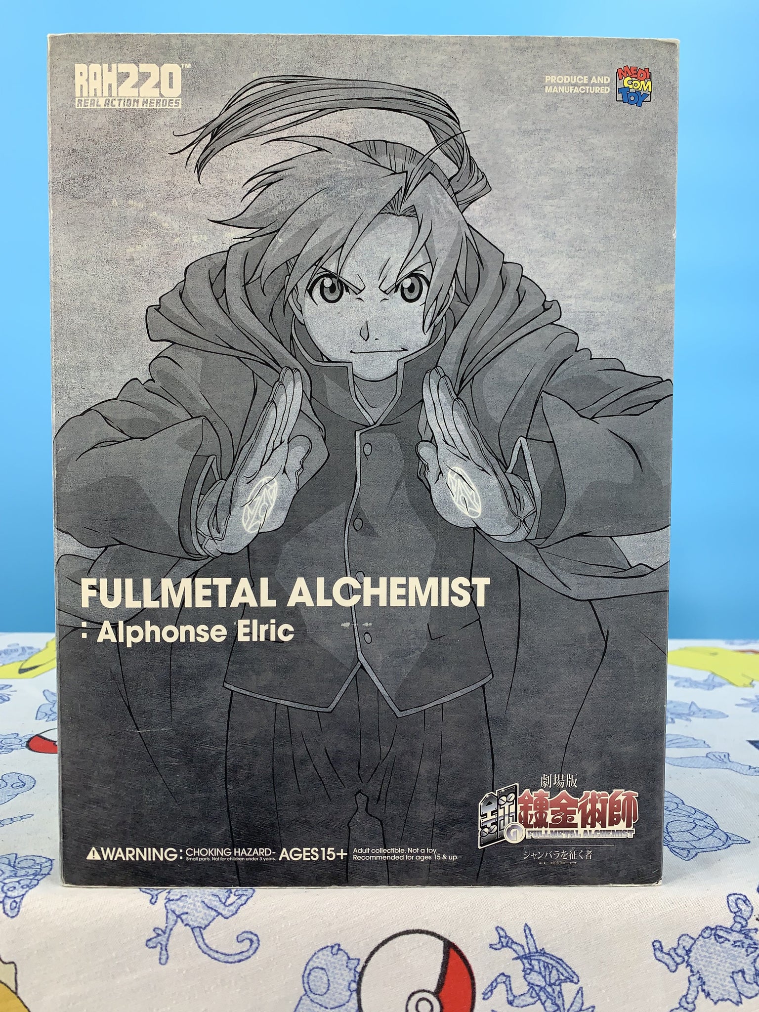 From the "Fullmetal Alchemist: Conqueror of Shamballa" movie comes this superb action doll of Alphonse Elric in his human form! Utilizing Medicom's RAH220 fully articulated body frame, 23cm-tall Al is able to strike a wide range of realistic poses, and adding to the realism is his carefully crafted fabric clothing; his red coat is even posable at its hems! Al's hair and shoes are made of soft vinyl. Accessories include five pairs of optional hands. A figure display stand is included to help keep him upright.