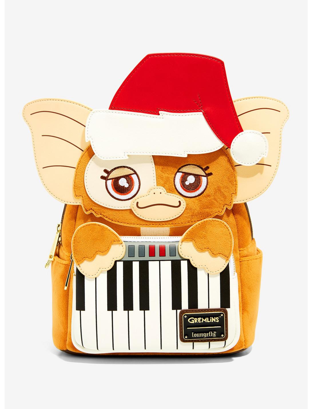 Gizmo has got your back for all of your adventures – literally! Inspired by the fan-favorite movie, Gremlins, the adorable Mogwai lends his look to this Loungefly mini backpack, with die-cut details appearing on the front design to match his fur pattern and hands. Complete with a keyboard graphic on the front pocket, he'll be sure to help carry all of your daily essentials with ease. Just make sure you don't feed him after midnight! Also features an enamel brand badge, adjustable shoulder straps, an interior lining pattern of Gizmo in multiple poses, and a removable Santa hat to attach to the front.