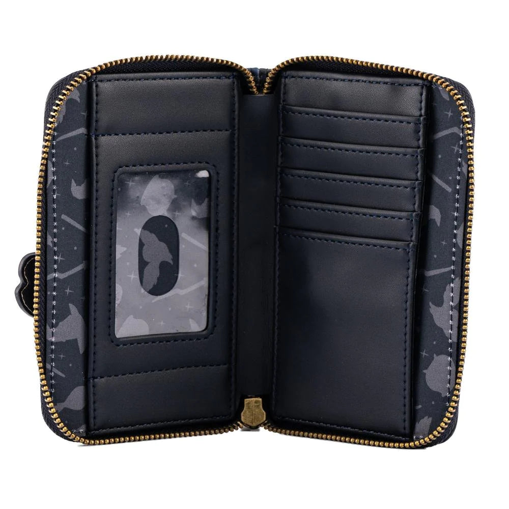 Hold all your wizarding coins in this Loungefly Harry Potter Diagon Alley zip-around wallet! Don't spend it all at the Weasleys' Wizard Wheezes which can be seen on one side of this faux leather wallet. The Harry Potter merchandise features applique, gold foil, and printed details on a dark faux leather base.
