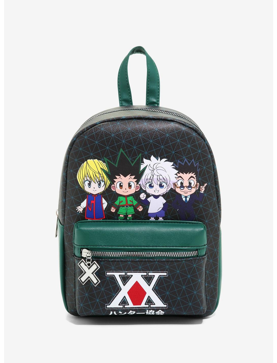 You don't need Gyo to see this totally adorable Hunter x Hunter backpack! Pack up all of your essentials for your journey to Heavens Arena in this mini backpack, featuring chibi Kurapika, Gon, Killua and Leorio up top with the Hunter logo on the front pocket. Interior drop pocket, adjustable straps and front zipper pull charm included!