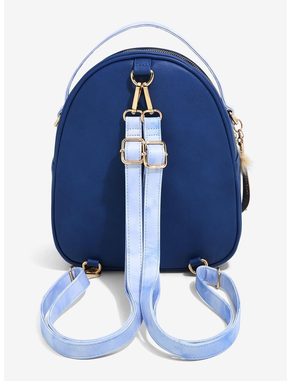 Whether it's in this time period or another, you can always carry your travel needs in style with this InuYasha mini backpack! Inspired by the classic anime series, brothers Sesshomaru and InuYasha pose on the front of this bag, with gold-toned charms of their Tenseiga and Tessaiga swords adorning the left side. Also features gold-toned hardware, an enamel brand badge, and the InuYasha logo on the back.