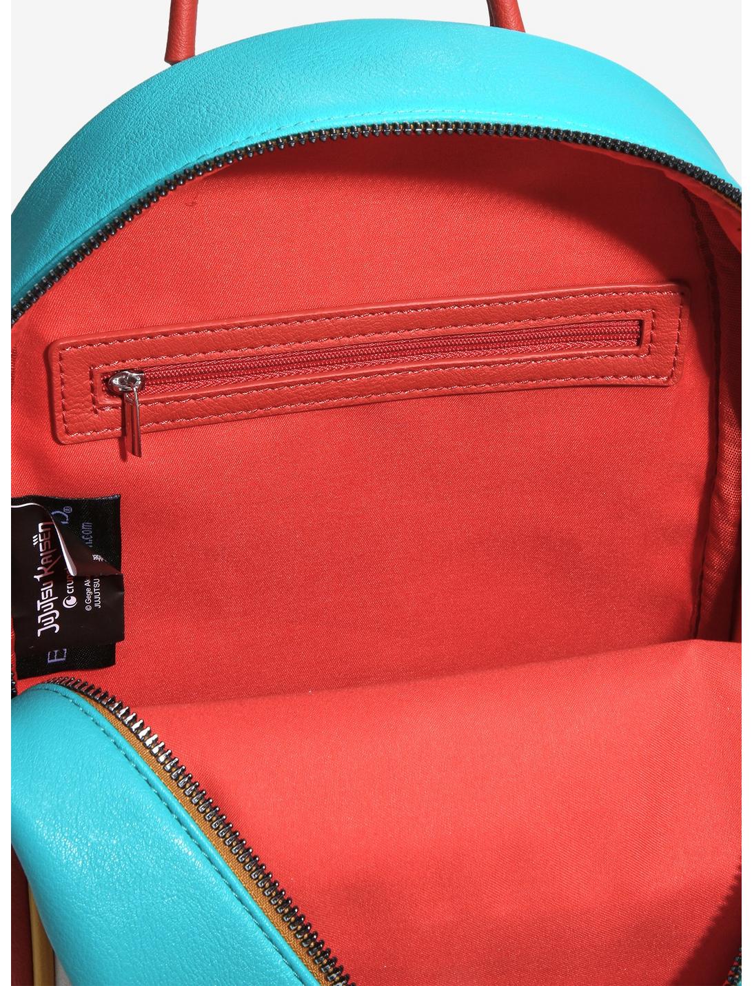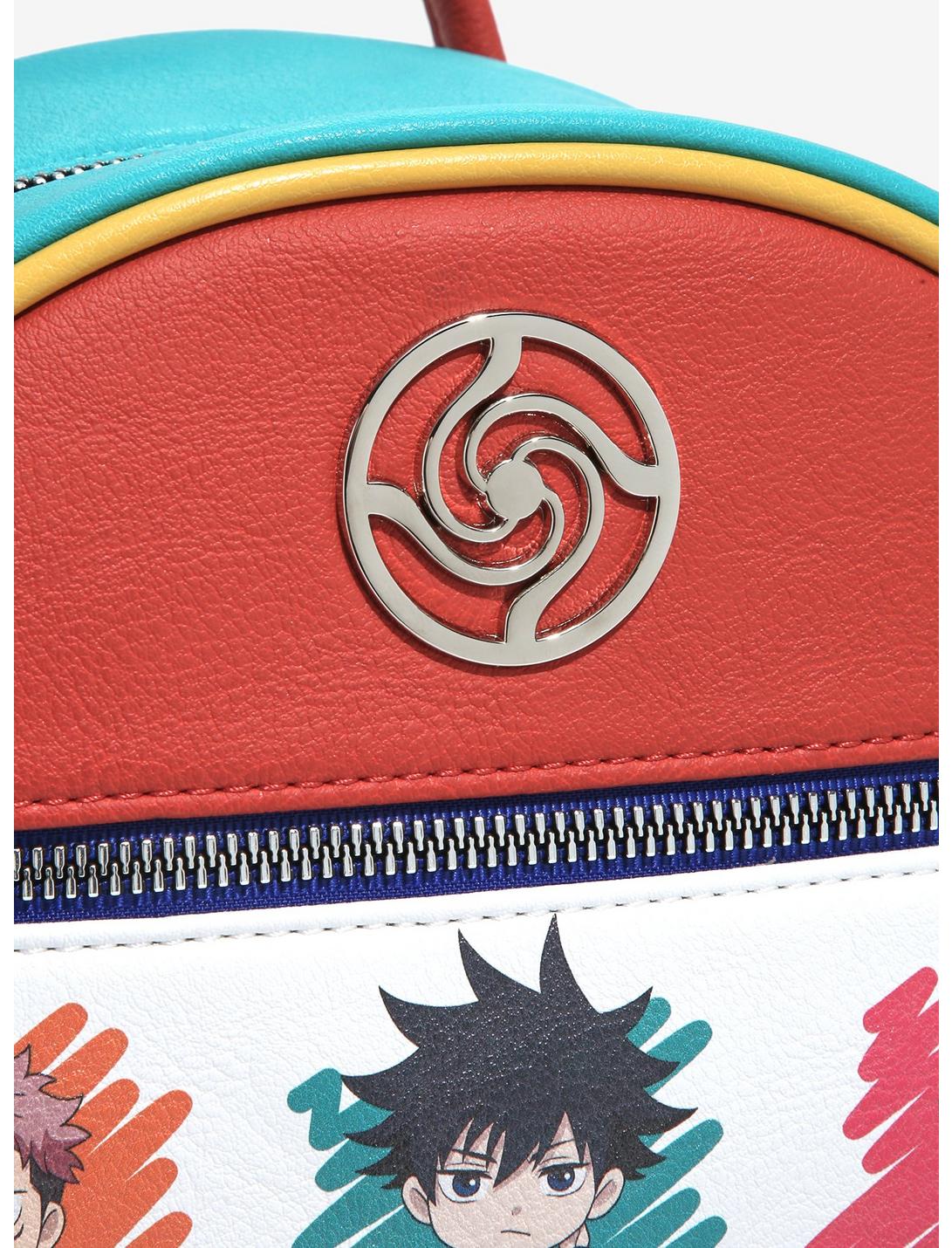 The cast of Jujutsu Kaisen have been given an adorable chibi makeover on the front of this anime-inspired mini backpack! Yuji, Megumi, Nobara, and the rest of the Tokyo Jujutsu High pose on the front of this bag, waiting to exorcise any nearby curses as you take them along on all of your travels. Features two side pockets, silver-toned lining, adjustable shoulder straps, and an enamel brand badge of the Tokyo Jujutsu High logo!