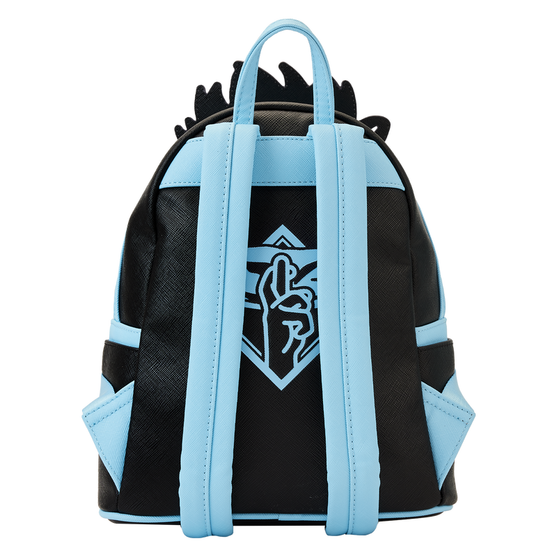 Class is in session! The Loungefly JUJUTSU KAISEN Satoru Gojo Cosplay Mini Backpack brings the powerful sorcerer to life. Taking shape on the front of the bag, Gojo wears his signature blindfold as his hair flows up above. Details of his jacket appear on the front zipper pocket, and an enamel zipper charm of Gojo’s hand and blindfold completes the scene. Turn the bag around to see an encore appearance of Gojo’s iconic symbols. A great match for sorcerers and students alike, this heroic accessory will keep your cursed objects safe at hand.