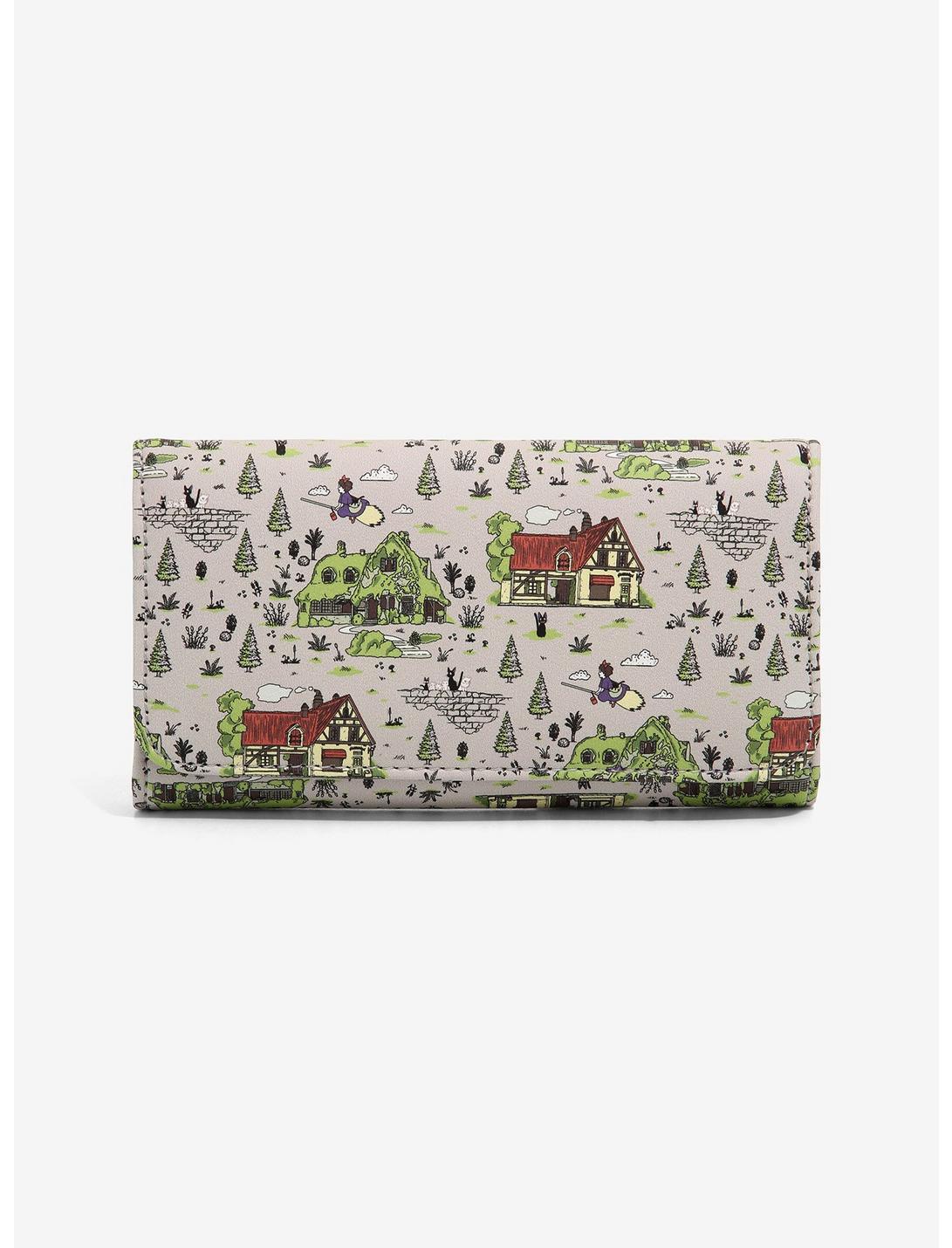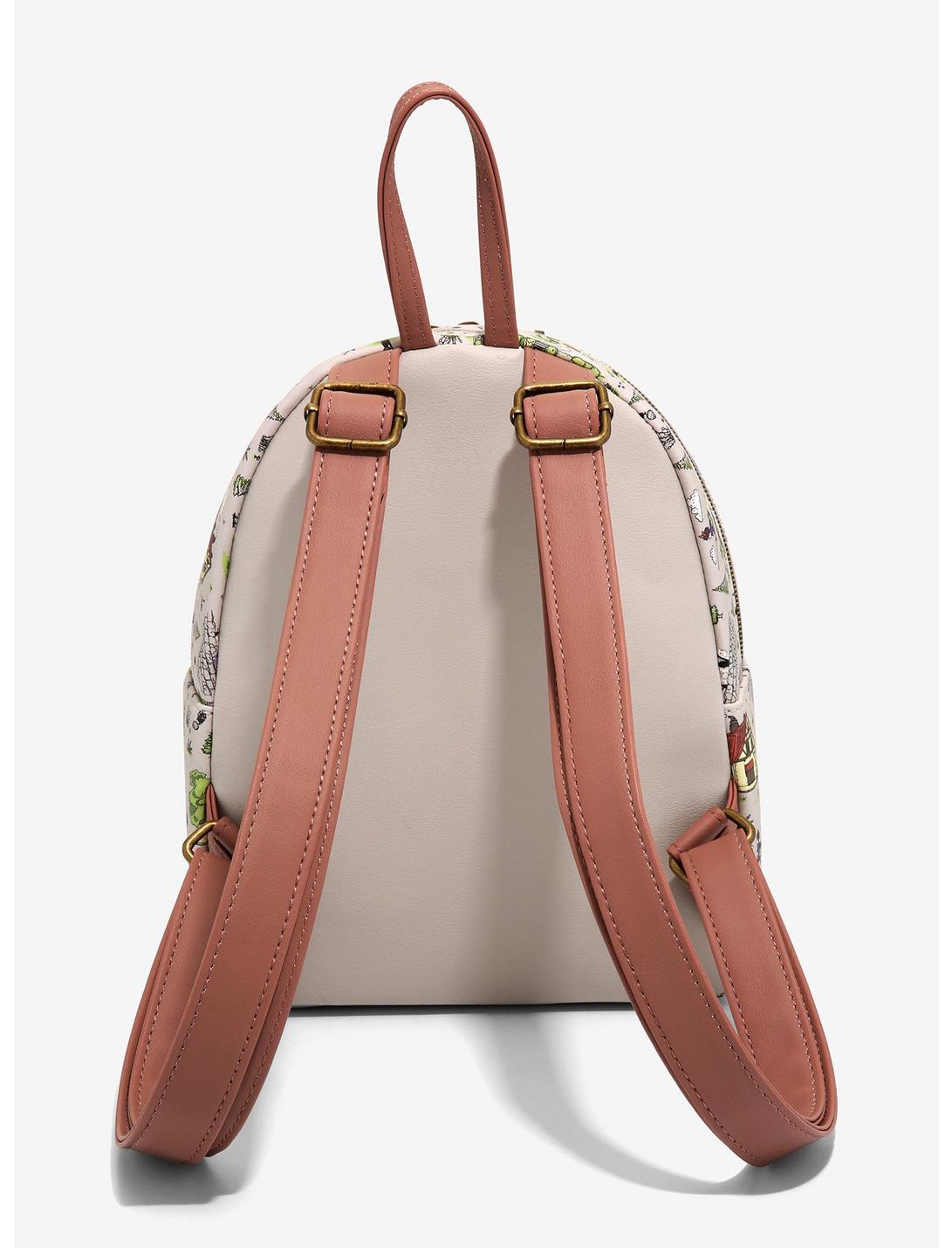 Make sure you have somewhere to keep important delivery items with this mini backpack from Kiki's Delivery Service. Printed all over with places and buildings from the Studio Ghibli movie with Kiki on her broom, Jiji, Lily and the kittens. Featuring a front zipper pocket with kitten enamel pull, top zipper closure, internal pocket, adjustable straps and a top carrying handle.