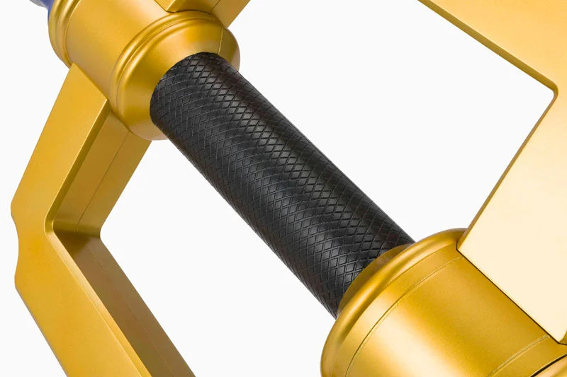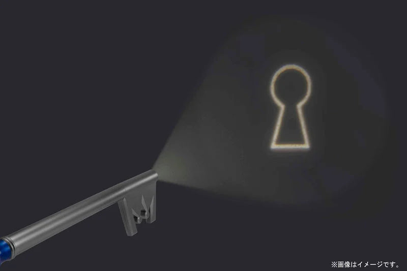 This beautiful Proplica piece replicates the Keyblade from the Kingdom Hearts series. Designed to look just like it does in the game it also includes built in battle noises and magic sounds. When the magic sounds play the base of the blade illuminates in six randomly flashing colors. This Keyblade also features a projection of a keyhole so you can replicate the door-opening scenes!