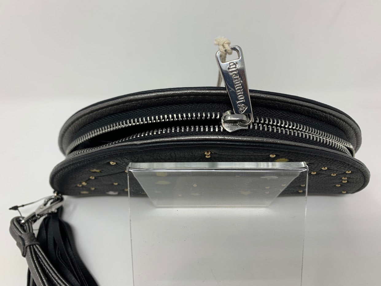 This is your time to shine and release your inner astrologer with this gorgeous Celestial design Loungefly wristlet. Featuring a crescent moon shape with embroidered and debossed detailing, it's the perfect accessory for someone who has their head in the stars! Measuring approximately 6” width by 4” height.