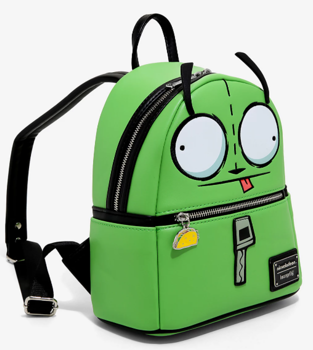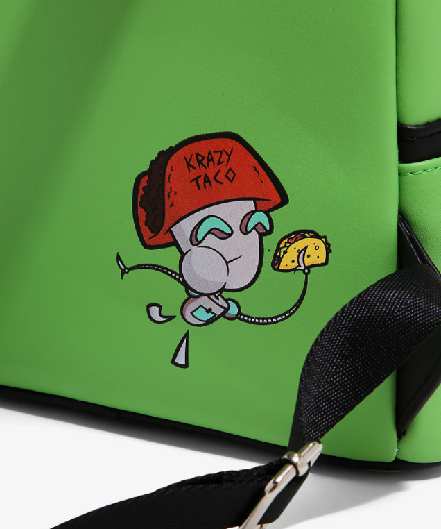 Got your trusty robot sidekick with you? Or is he disguised as a dog who's disguised as a mini backpack? who knows! This faux leather backpack from Invader Zim features embroidered and appliqued details to look just like Gir. Featuring a front zipper pocket with enamel taco zipper pull, side pockets, adjustable straps, carrying handle, top zipper closure and internal zipper pocket.