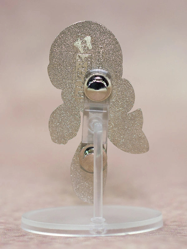 - Pin is displayed on a custom Nendoroid stand with protective backing.