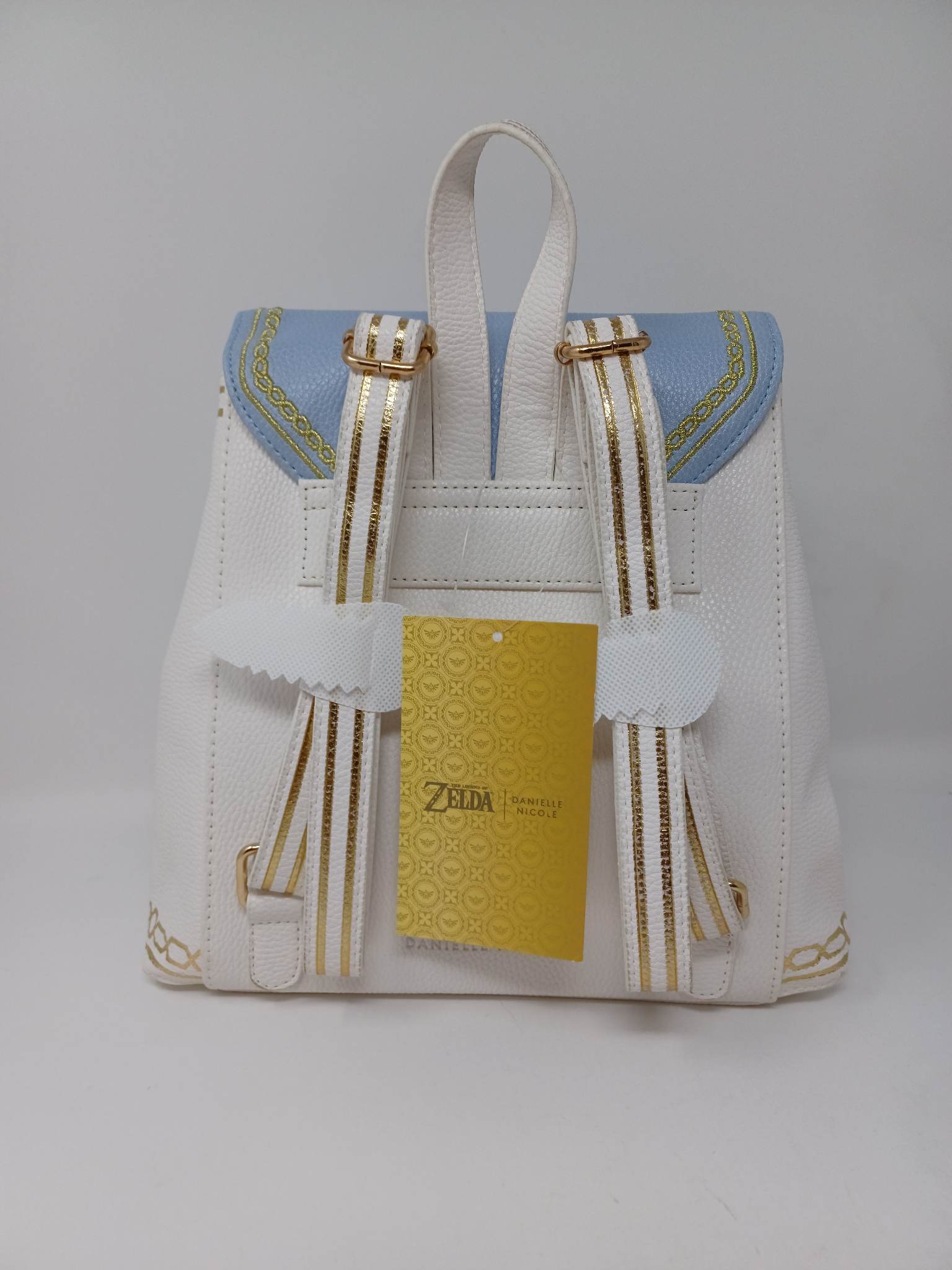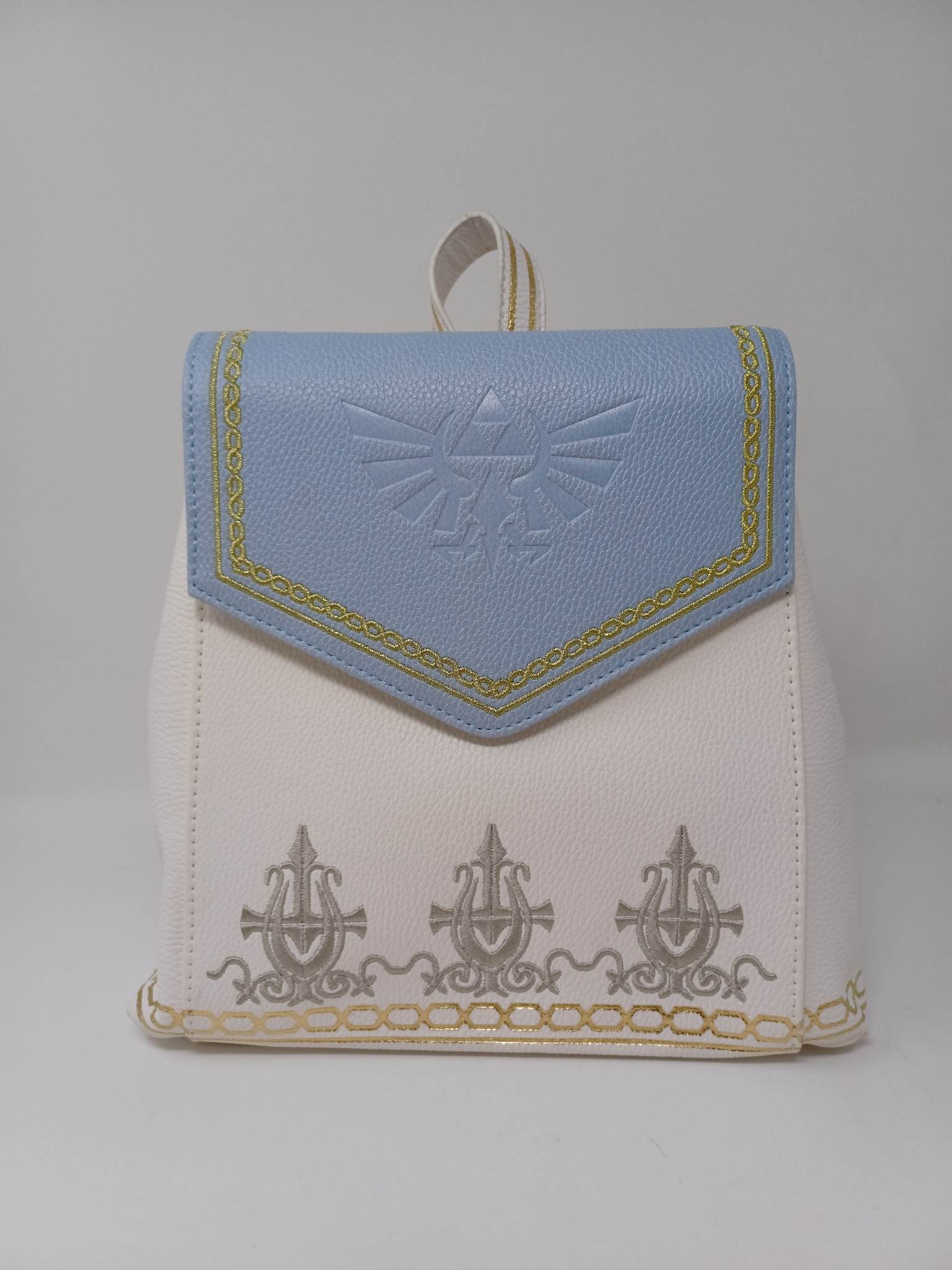 Keep all your collections of rupees and other goodies safe in this backpack and wallet set inspired by the hit video game series, Legend of Zelda. Designed by Danielle Nicole, this bag features several embroidered and metallic accent details on the front, sides, and even on the straps. Both feature an embossed accent of the Triforce logo on the top flap.