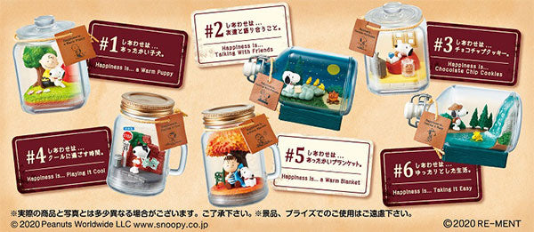 Each box contains 1 of the following figures:Lineup: (Planned)-Happiness is... A warm puppy.-Happiness is... Talking with friends.-Happiness is... Chocolate chip cookies.-Happiness is... Time spent being Cool.-Happiness is... A warm blanket.-Happiness is... A relaxed lifestyle.