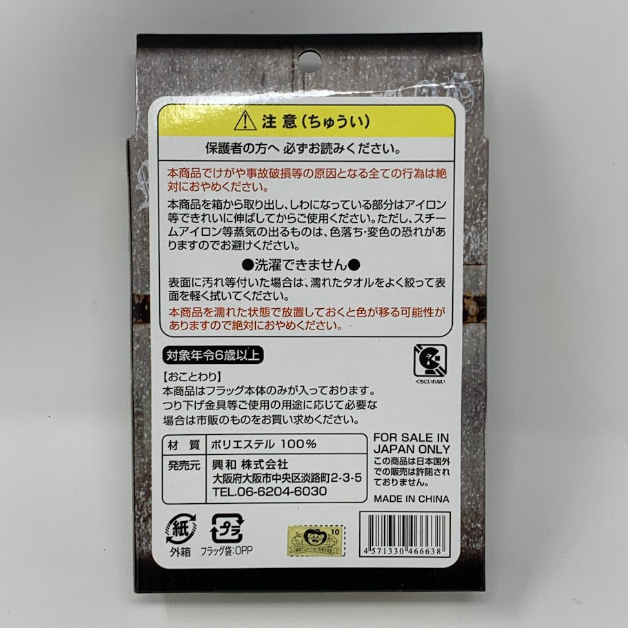 This flag features a metallic, punky print on the borders, and Laws symbol in the center.