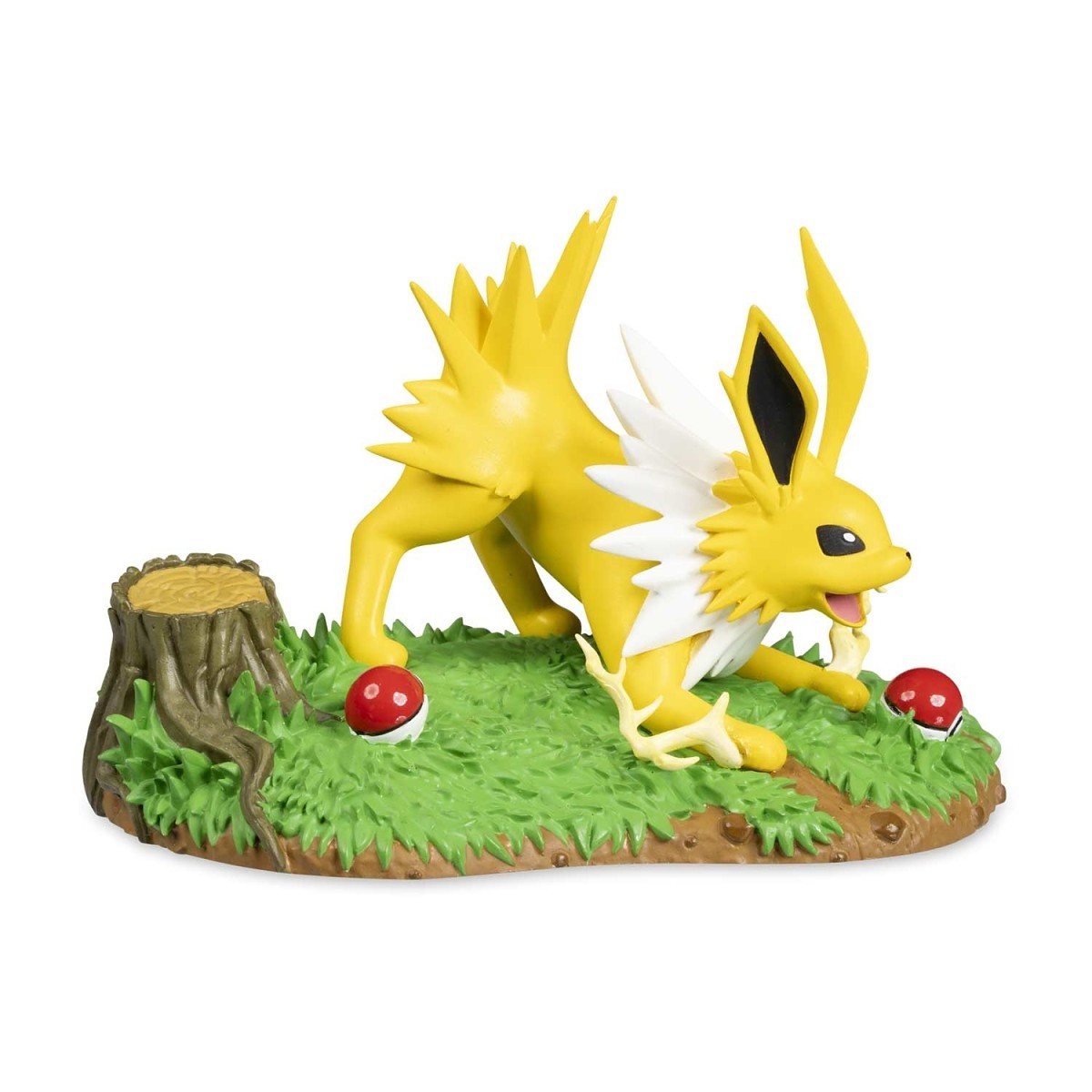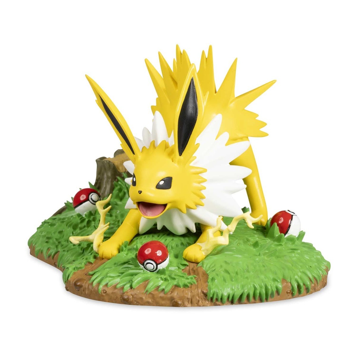 Which Eevee Evolution is known for its electrifying personality? It’s Jolteon, of course! Lightning fast and seemingly in its element, this figure featuring the Electric-type Pokémon grins, surrounded by Poké Balls that were unable to catch it. This collectible offers a fun way to celebrate Eevee, its Evolutions, and Trainers who are energetic and playful!