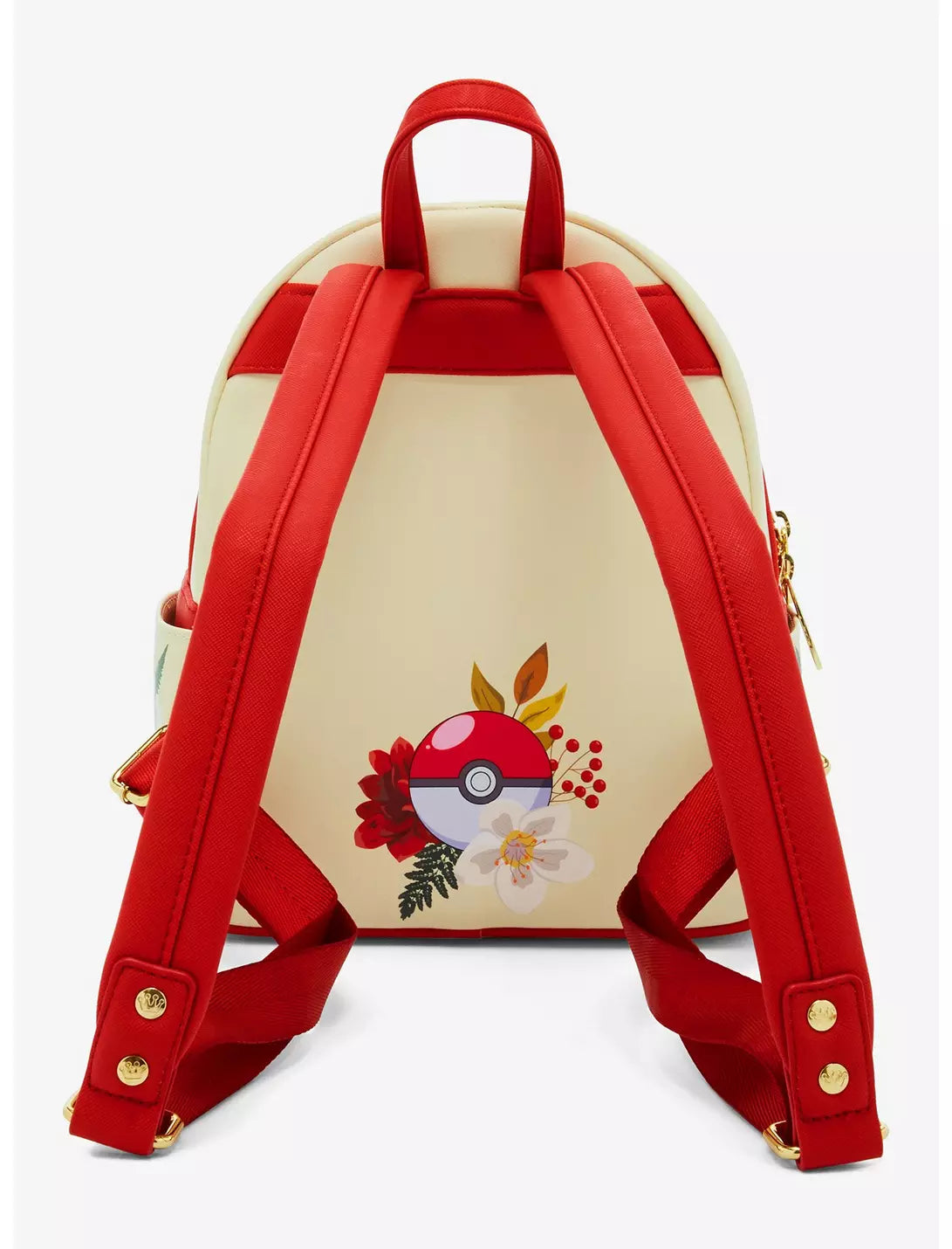 Pack up for your next battle with this Pokemon mini backpack! Featuring a design of Charmander, Vulpix, Eevee, Meowth, and Pidgey among embroidered and printed flowers on the front, the back of the bag includes a Poke Ball design. With side pockets and adjustable straps, this accessory is perfect for Pokemon Masters.