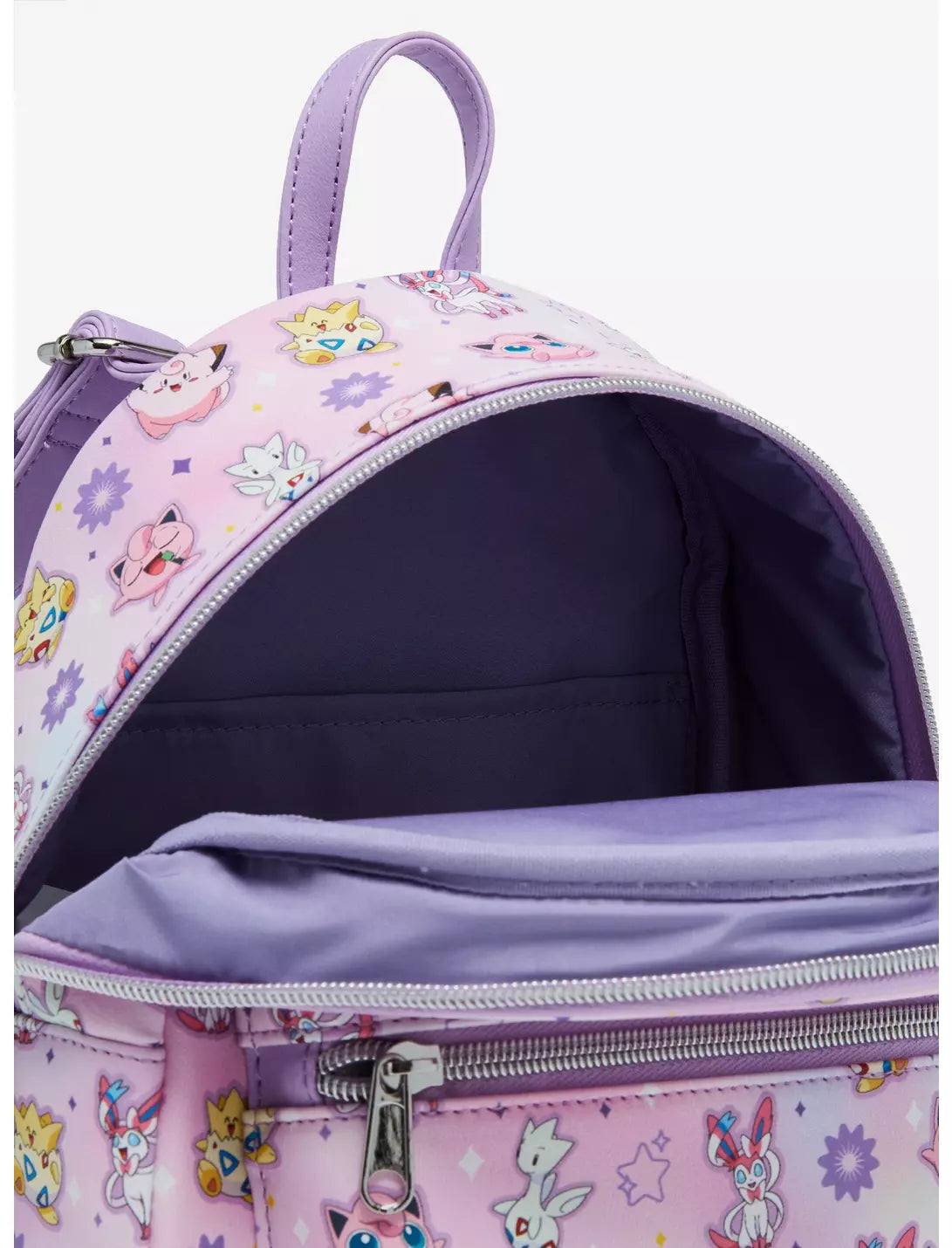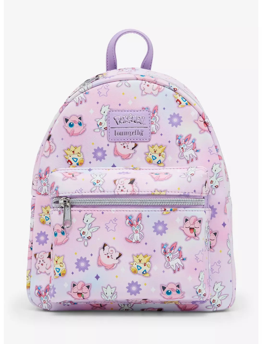 We've got baby-doll eyes for this Pokémon mini backpack! Make your way to the next Gym sporting this pink backpack, featuring an allover print of some of your favorite Fairy-type Pokémon, including Sylveon, Togepi, Jigglypuff and more! Comes with adjustable straps, interior drop pocket, front zipper pocket and a top carrying handle.