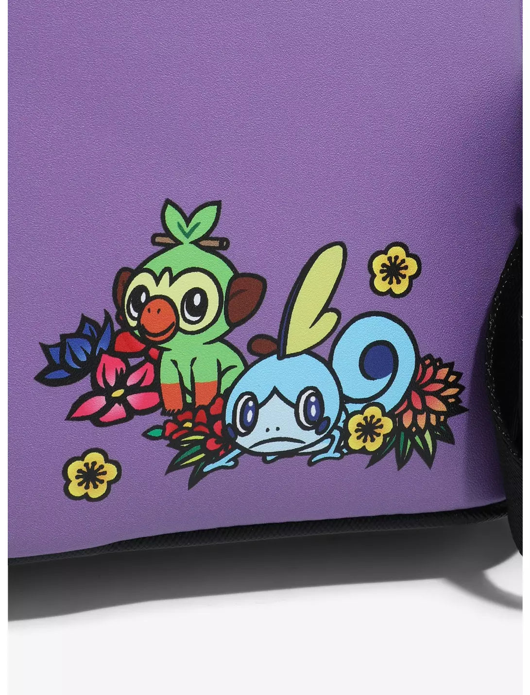 Catch Pokémon in floral fashion with this Loungefly mini backpack! Featuring an applique of Gengar on the front pocket, the front of this bag includes debossed details of Pikachu, Eevee, and flowers. With portraits of Charizard and Scorbunny on the side pockets and portraits of Grookey and Sobble on the back, this bag is perfect for taking on your next training session.