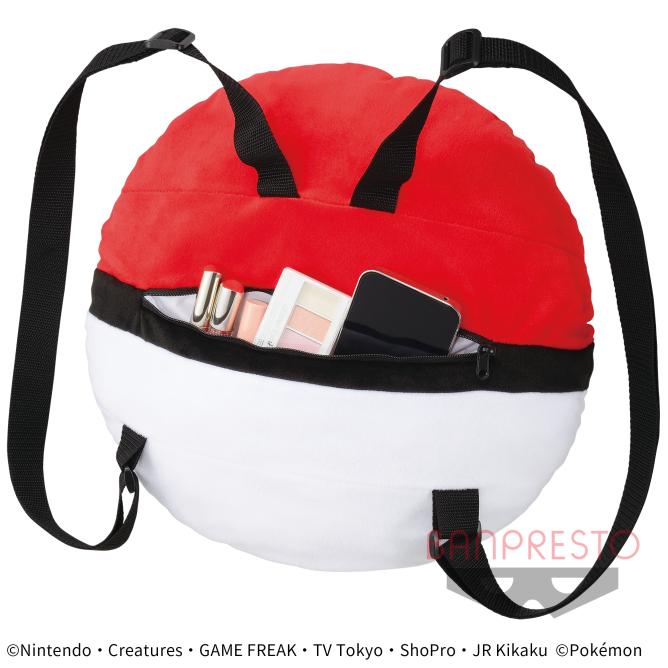 From Banpresto, comes this huge plush backpack in the shape of a Pokeball!
