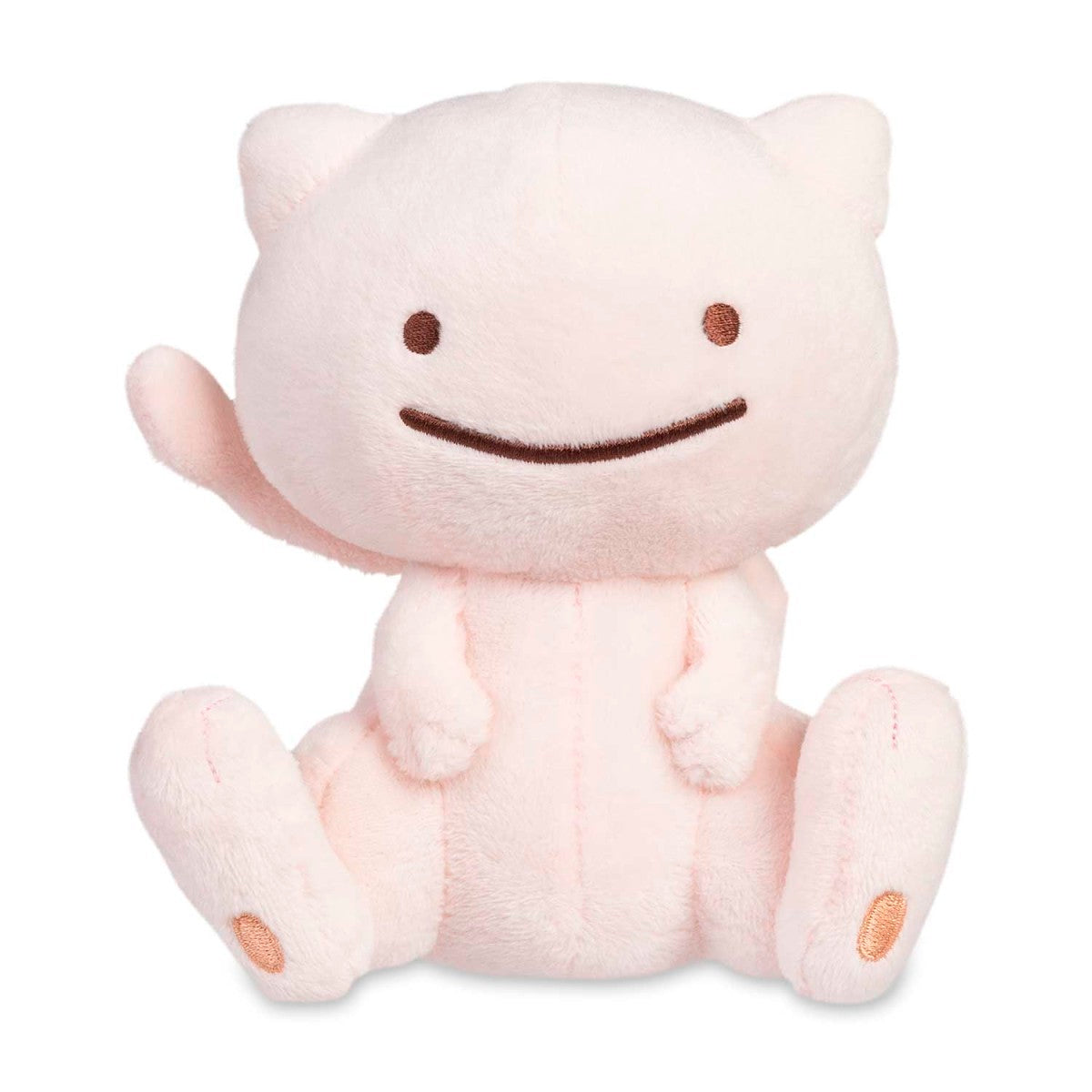Ditto is pretending to be Mew! How can you tell? It's all in the eyes! Enjoy Ditto taking on lots of different looks in the Ditto As collection. This plush is a 2025 re-release of the 2019 Ditto as Mew plush!