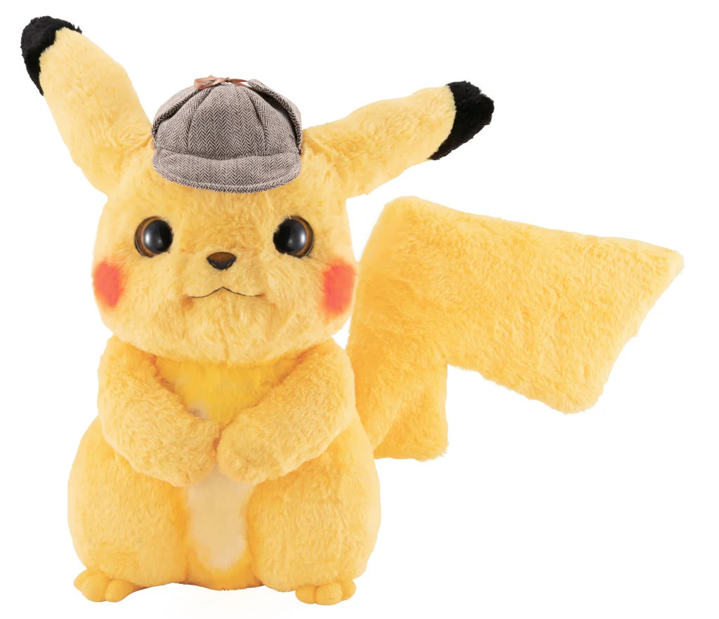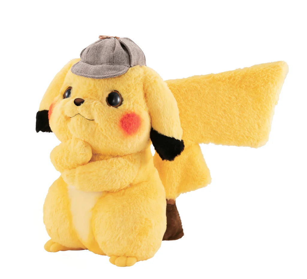 Welcome to Ryme City Detective Pikachu! From the movie Detective Pikachu is the official lifesize plush doll! This doll also has articulated arms, ears, and tail! Go and solve some mysteries with your very own Pikachu!