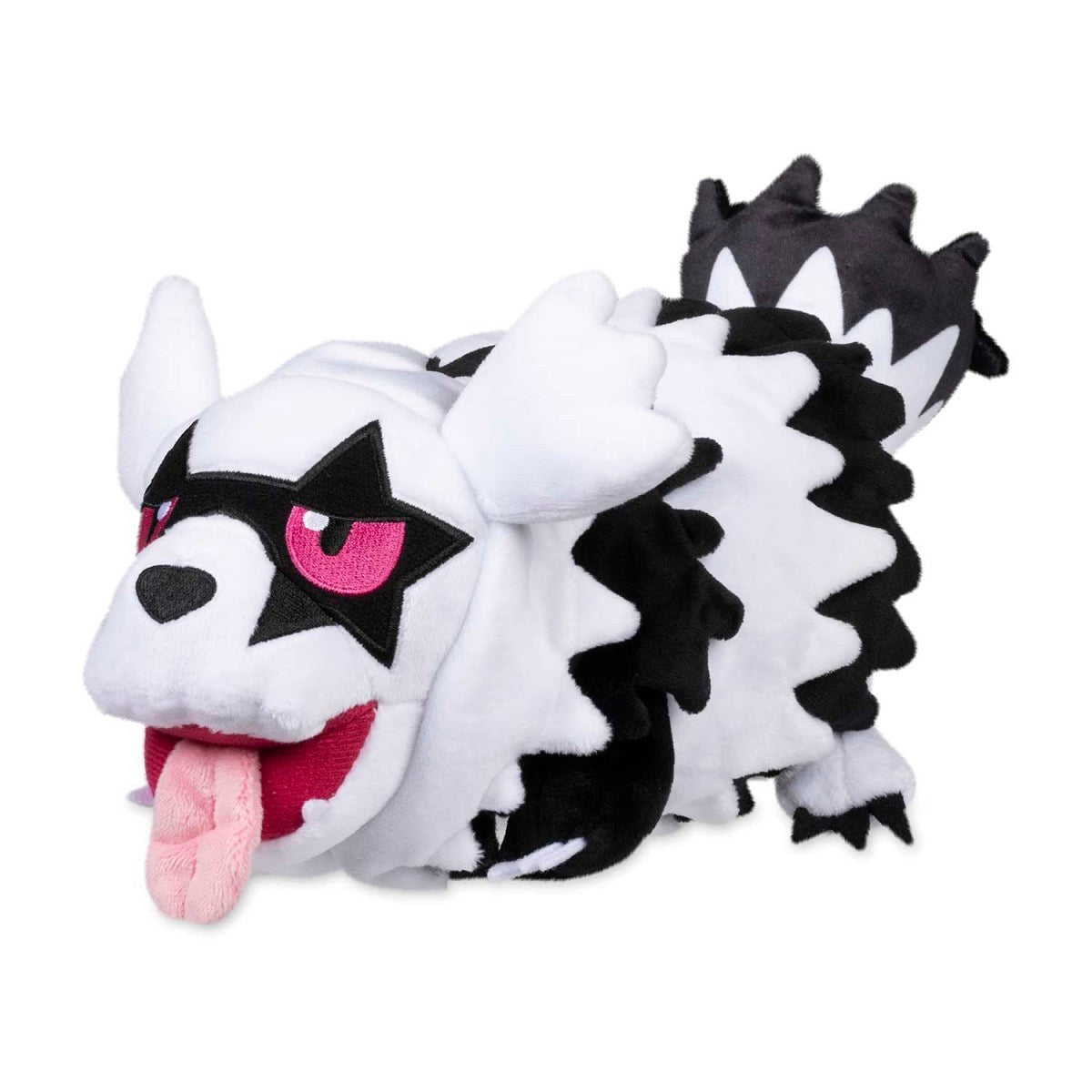 With its tongue hanging out and its eyes on the prize, this Galarian Zigzagoon plush looks fantastic as a wild accent on your couch or among the other plush in your collection. Its bold black-and-white, spiky fur and star-patterned eyes are sure to make your guests take notice!