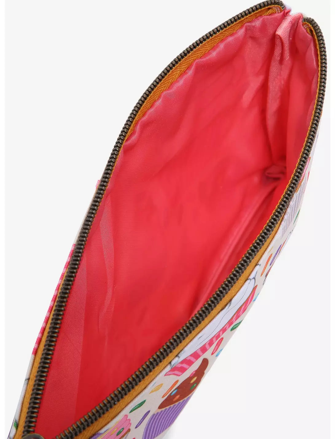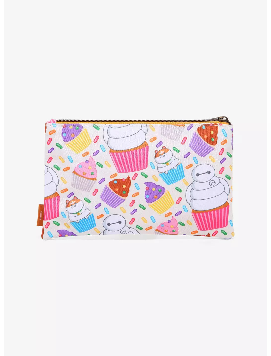 Heading into San Fransokyo? Make sure you carry your cosmetic essentials in this Big Hero 6 makeup bag. Filled with an allover print of sweet cupcakes and sprinkles, with Baymax and Mochi cupcakes, too! Top zipper closure.