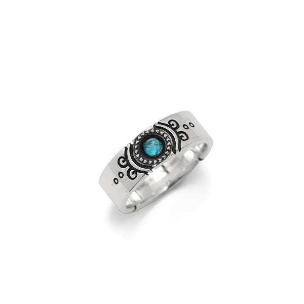 The main body is made of 925 silver, and the characteristic patterns are carved and then oxidized. Color may vary a little from ring to ring.