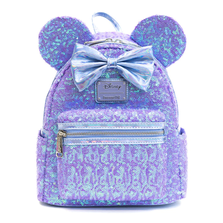Bring some sparkle to your life with this stunning purple sequin Minnie Mouse Loungefly mini backpack! Perfect for display or for every day use!