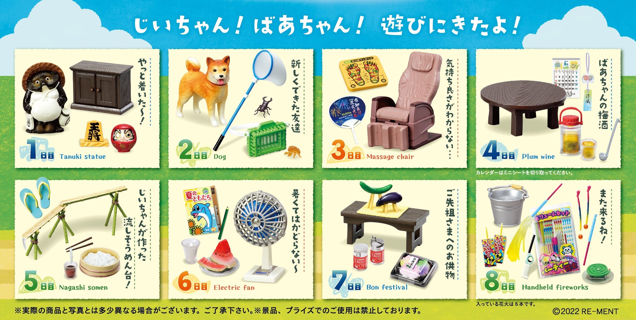 This set of miniatures from Re-Ment brings a heaping helping of nostalgia to your collection, with its lineup of things commonly found in the homes of grandpas and grandmas in the Japanese countryside! There are eight charming little sets of small-scale items, and you'll get one at random.