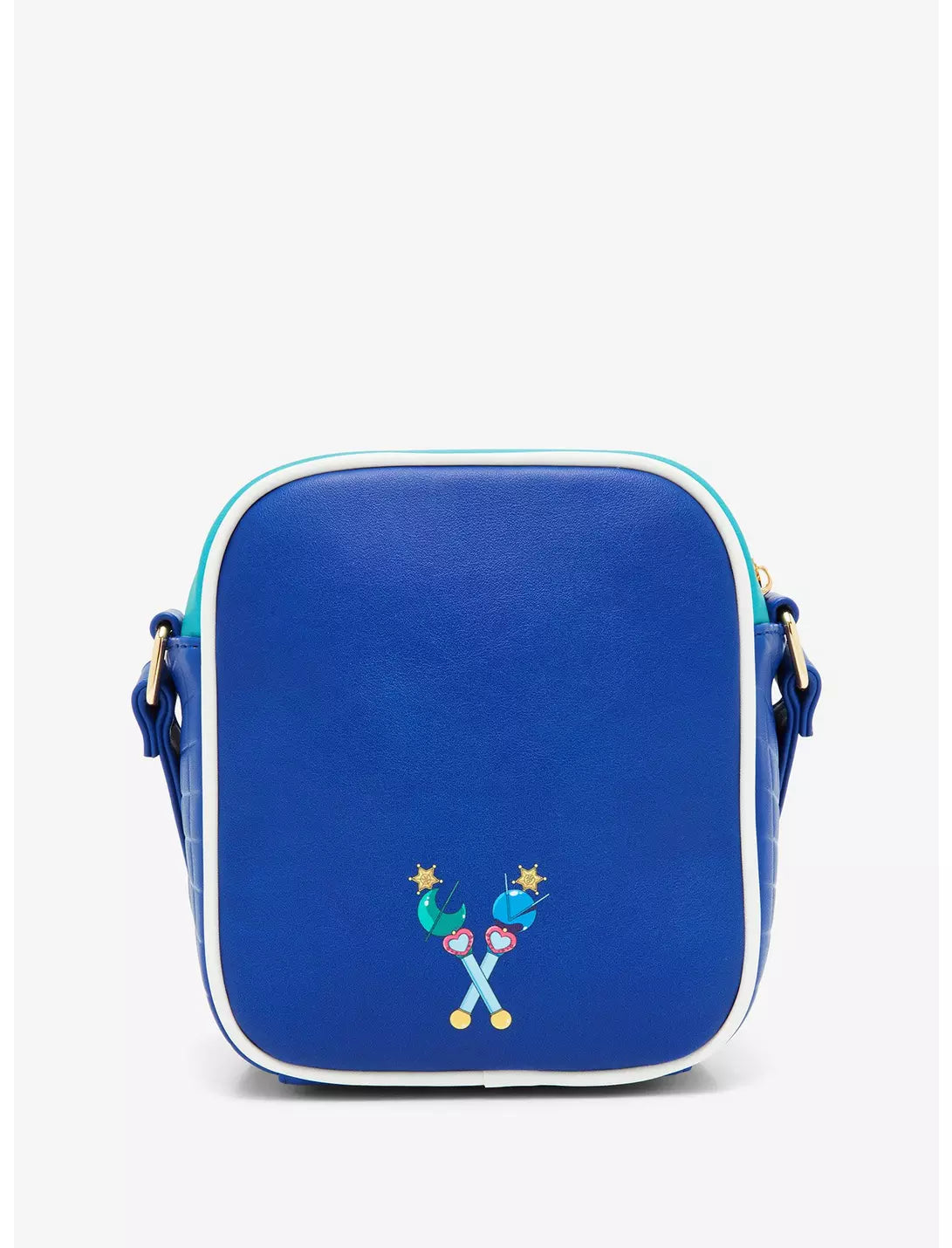 Carry your favorite Sailor Guardian partners wherever you go with this Pretty Guardian Sailor Moon-inspired crossbody bag! Featuring a portrait of Sailor Uranus and Sailor Neptune on the front pocket, the front of this bag also includes embossed icons of their items. With a graphic of their Transformation Lip Rods on the back and an adjustable crossbody strap, this bag is perfect for fans of the anime.